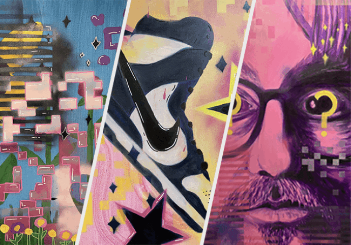 • Learn how to use spray paint and acrylic paint to create a faux digital effect