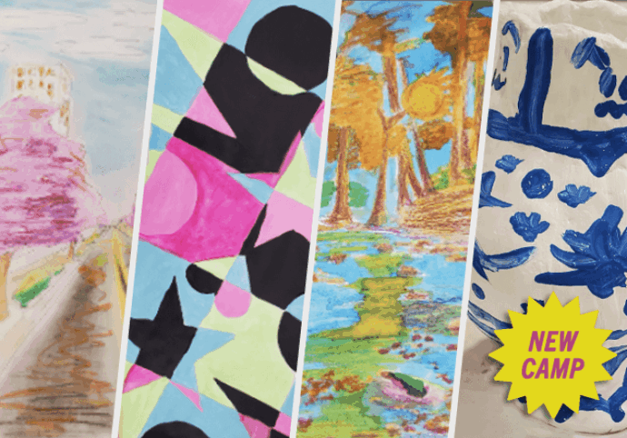 Unleash your creativity in our Experimental Sketchbook Camp, where artists dive into mixed media and bold techniques to transform the traditional sketchbook into a multi-dimensional art experience. Through collaging, painting, drawing, cutting, and creative manipulation, students push past the flat page to craft a sketchbook that’s as dynamic as their imagination.