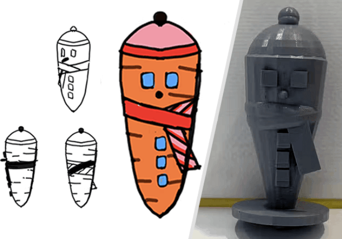 Learn to draw, digitally model, and prototype your own unique toy. Develop a character through traditional illustration techniques before drawing the toy version of the character at scale using drafting conventions and equipment. Students develop their toy design, the toy’s accessories, and packaging.