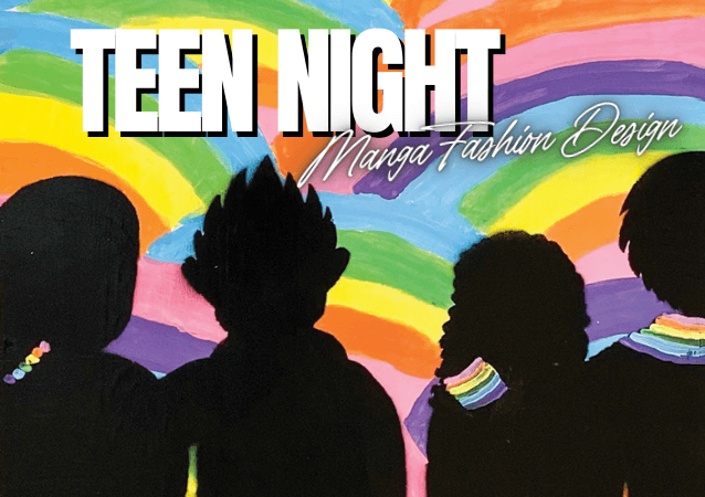 Join us for Teen Art Night just for students Grades 6-12. Design characters and outfits in a manga/anime style, while exploring fashion illustration techniques. Come hang with friends, make art, enjoy pizza and a movie!